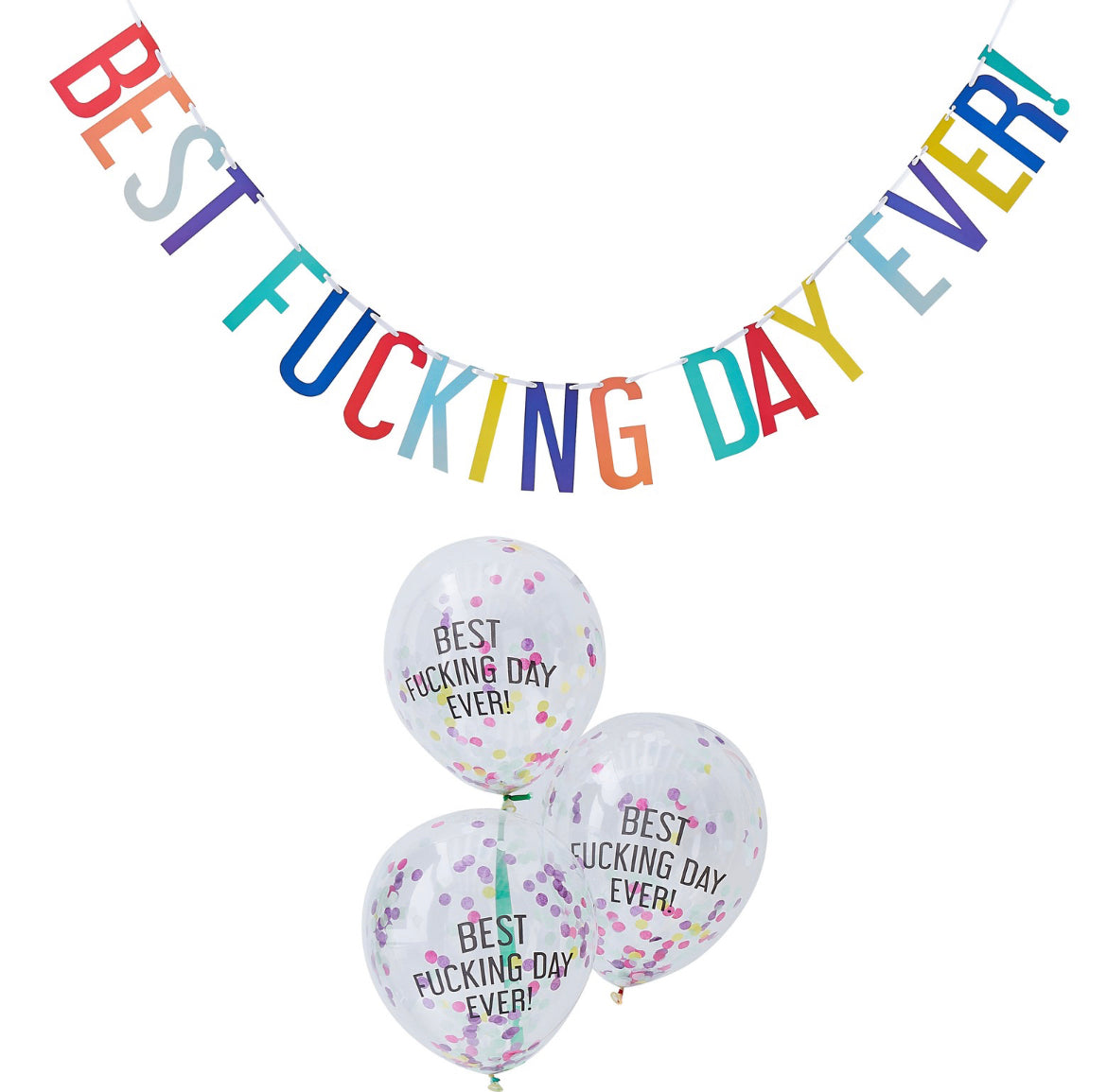The cheeky saying stands out in the vibrant lettering and the confetti balloons add a pop of colour to any venue. Be sure to wrap the birthday presents in our fuck you're old wrapping paper for a truly Naughty Party!