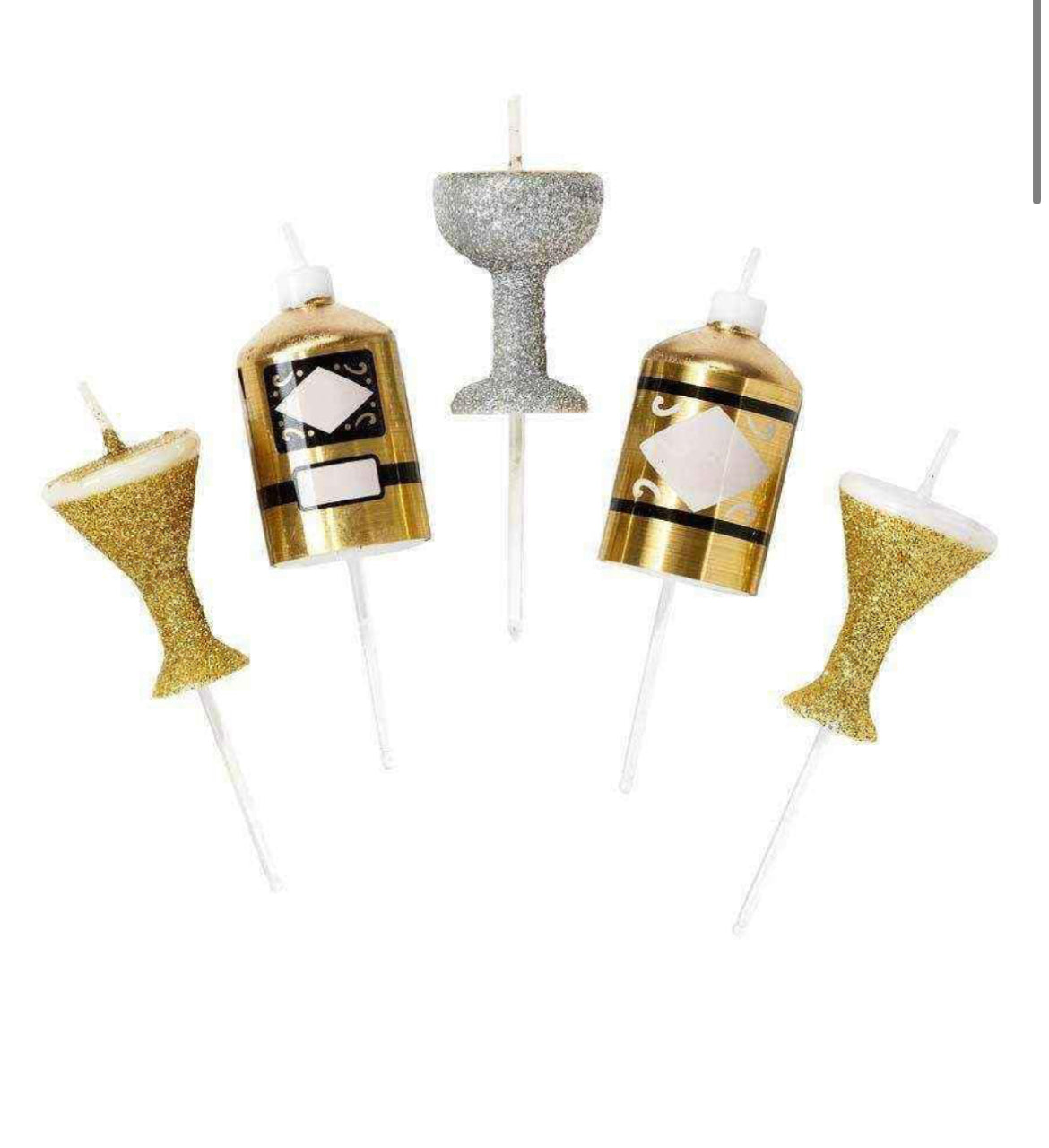 5 drinks shaped candles, cheers to another year. These shaped candles feature eye-catching glitter detail. Shop this versatile mix and match-able range, which can be sold year-round for birthdays, new years parties and more.