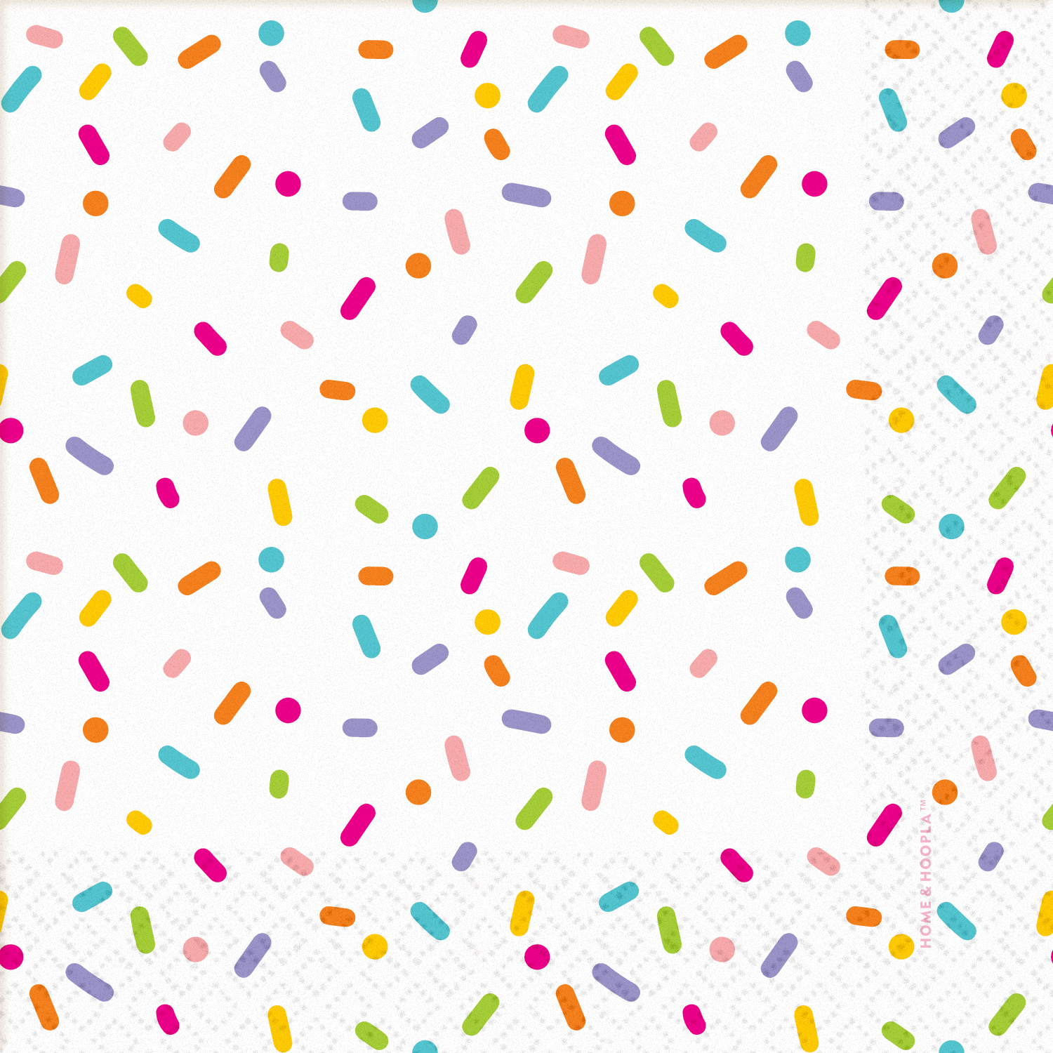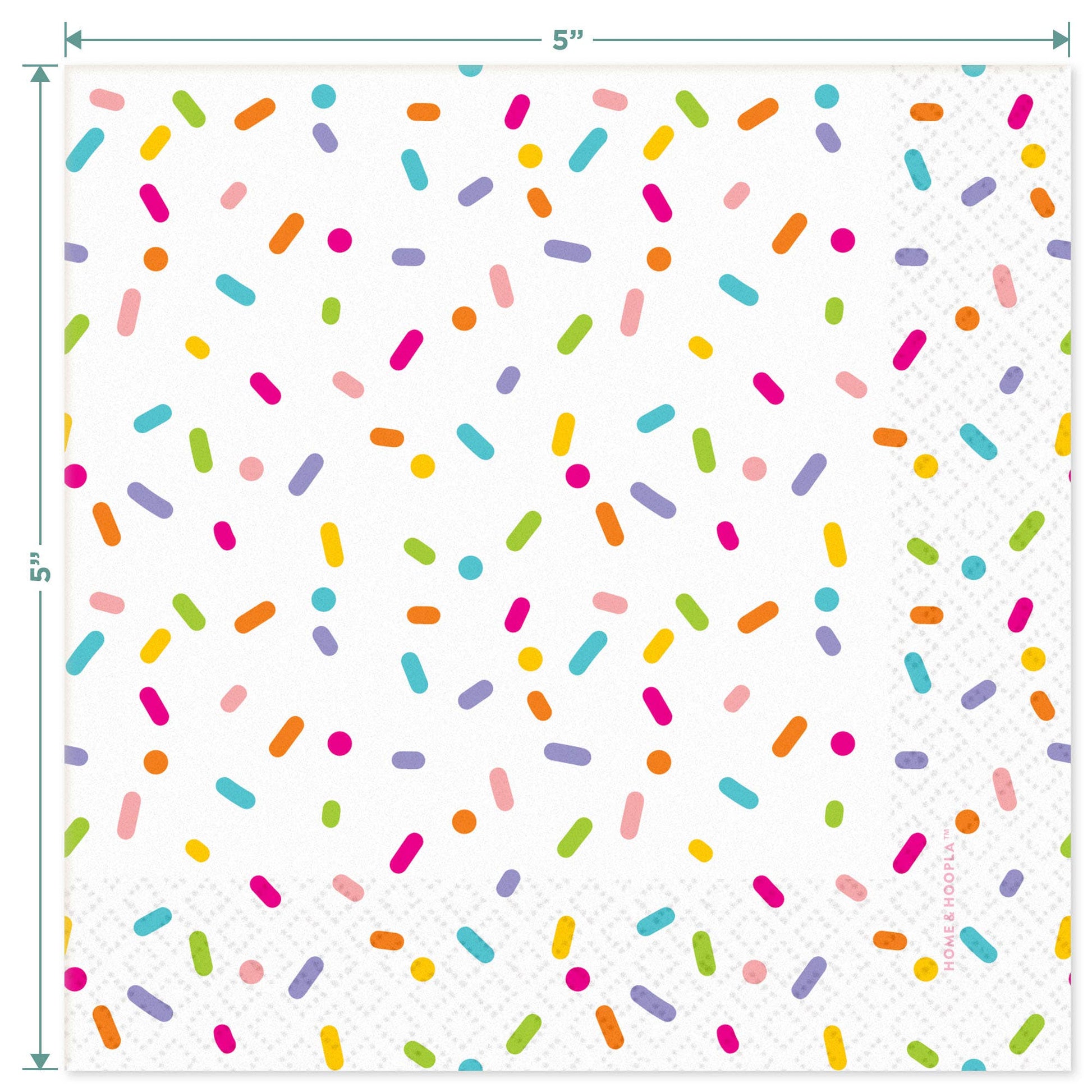 Colorful Candy Sprinkles Beverage Napkins (Serves 16) Add this Sprinkles Beverage Napkin Set to your celebration for a fun table display! Featuring a colorful candy-sprinkle design on a white background. The perfect design for baby showers or 1st birthday celebrations! Set includes 16 beverage napkins measuring 5 inches. Celebrate with this Sprinkles Beverage Napkin Set!