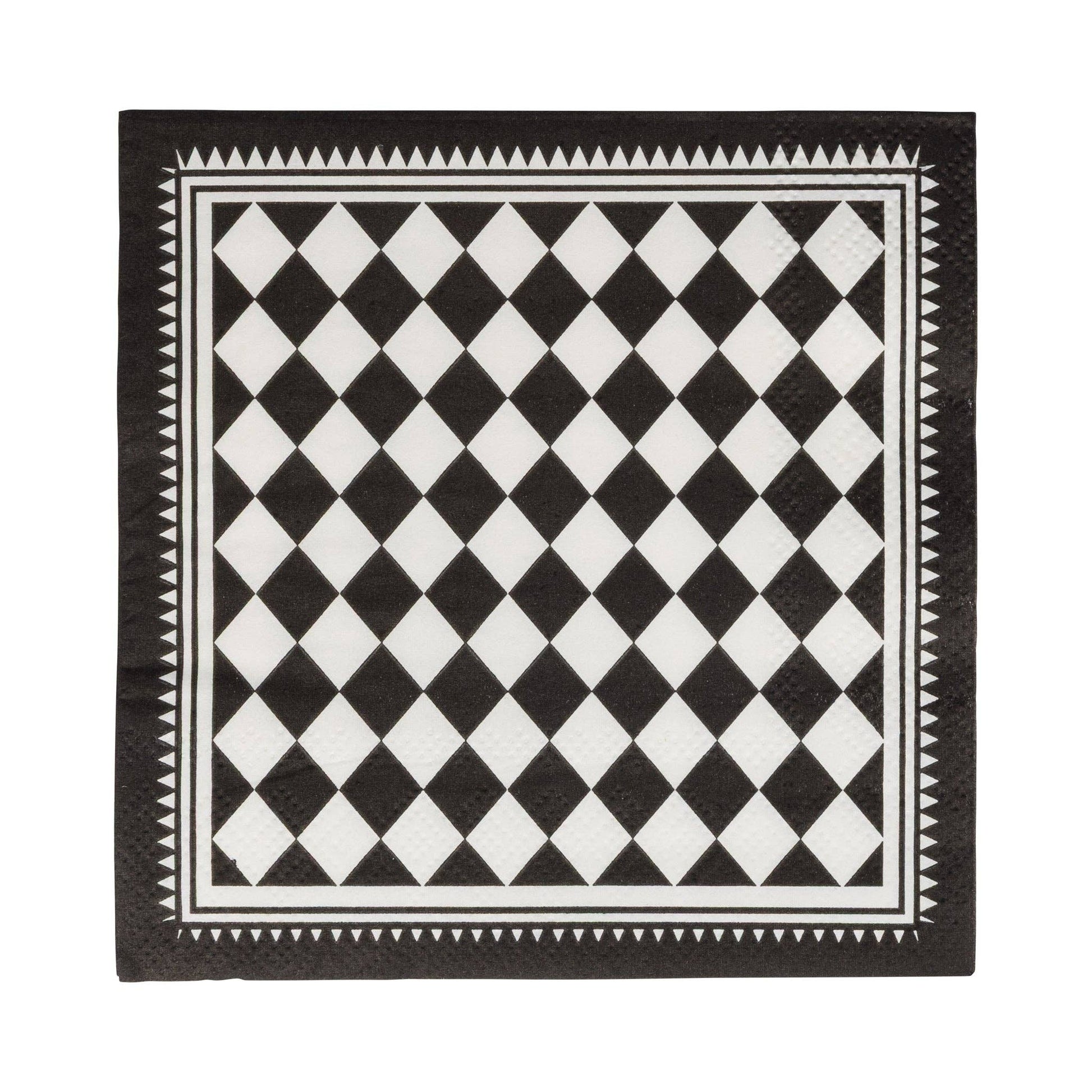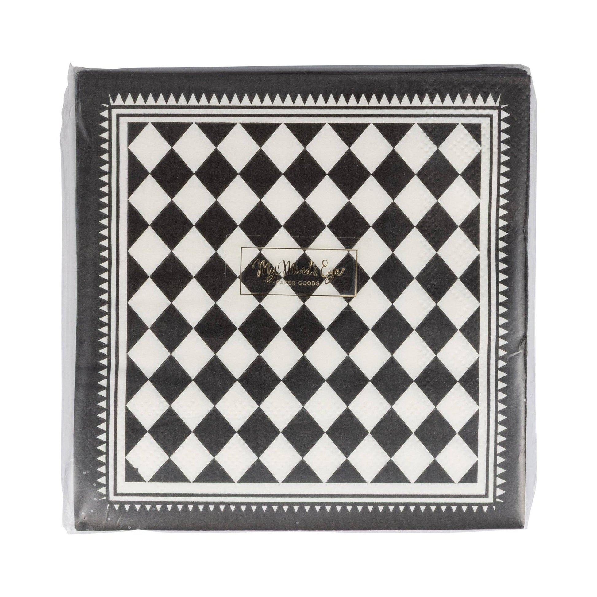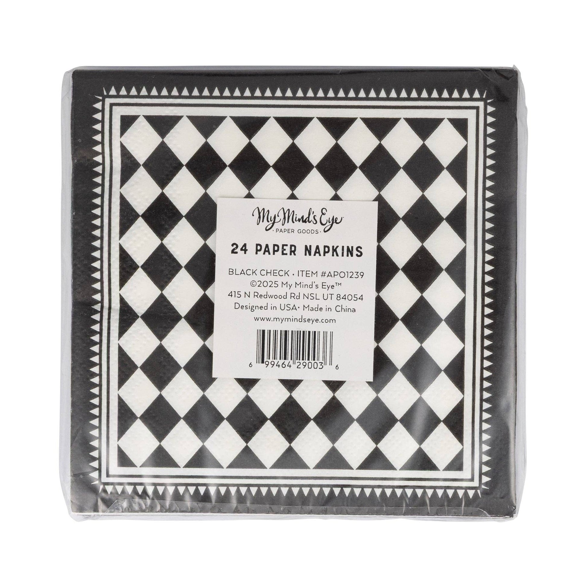 Get your Halloween table party-ready with these stylish Black Checkers Cocktail Napkins! The classic checkerboard pattern adds a touch of sophistication to your spooky celebration. Perfect for cocktail hours, appetizers, or dessert tables. These napkins are the must-have accessory for your Halloween gathering that combines fun and function! • includes 24 paper napkins • 5" x 5"