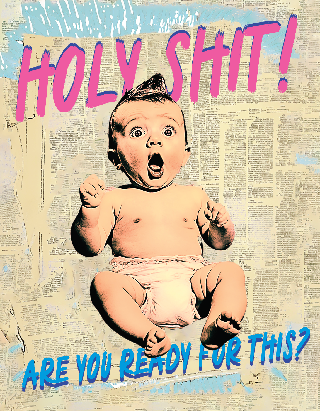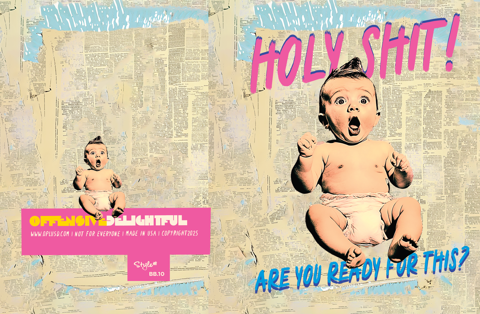 Style No. BB.10 "HOLY SHIT! are you ready for this?" baby, surprise, good luck, congratulations, baby shower, new mom, new dad
