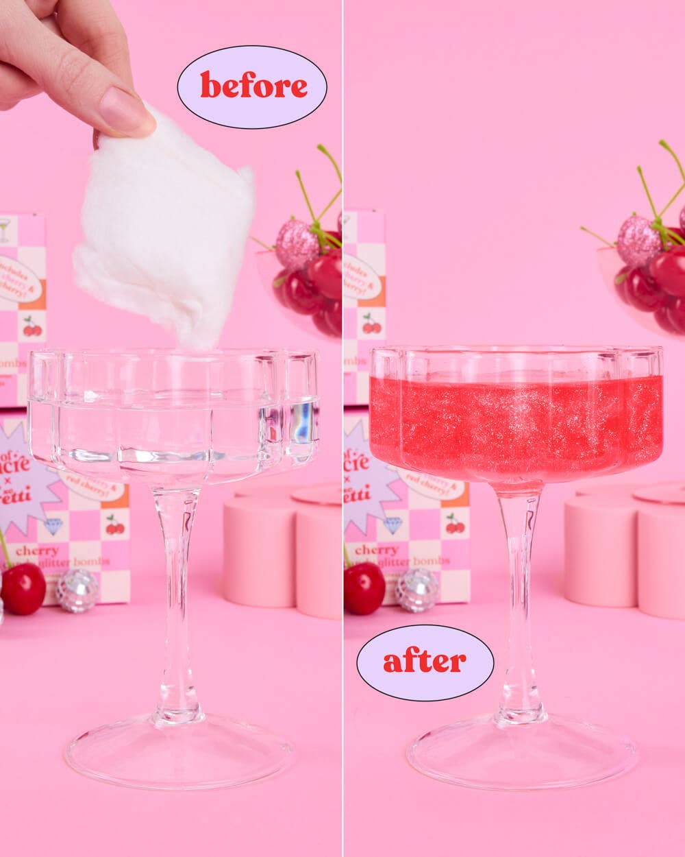 We teamed up with our friends at Art of Sucre to create the brightest, sparkliest cocktail accessory we could think of. This pack of 4 cotton candy glitter bombs will add some instant glitter + cherry flavor to your favorite bev.